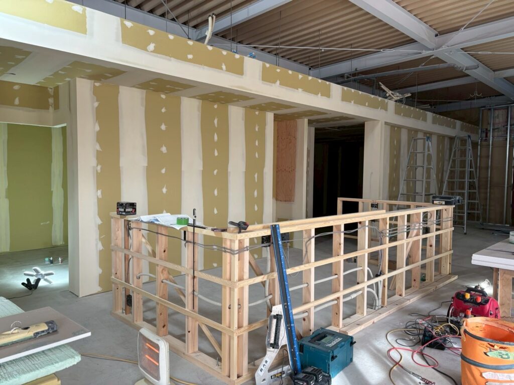 美容室や飲食店など、お店ができていく様子は面白いですね。完成が待ち遠しいですがまだまだ工程はあります!