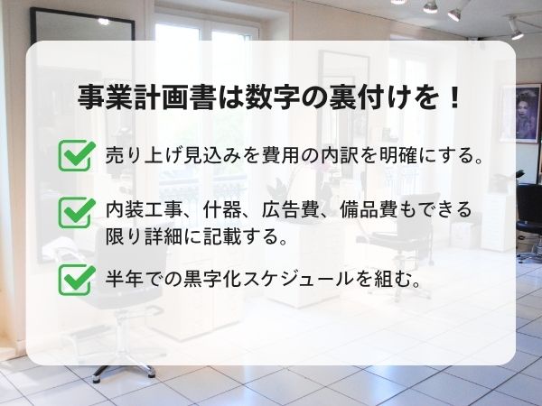 自己資金が少ない場合は、特に「事業計画の完成度」や「サロン経営への本気度」が重視されます。