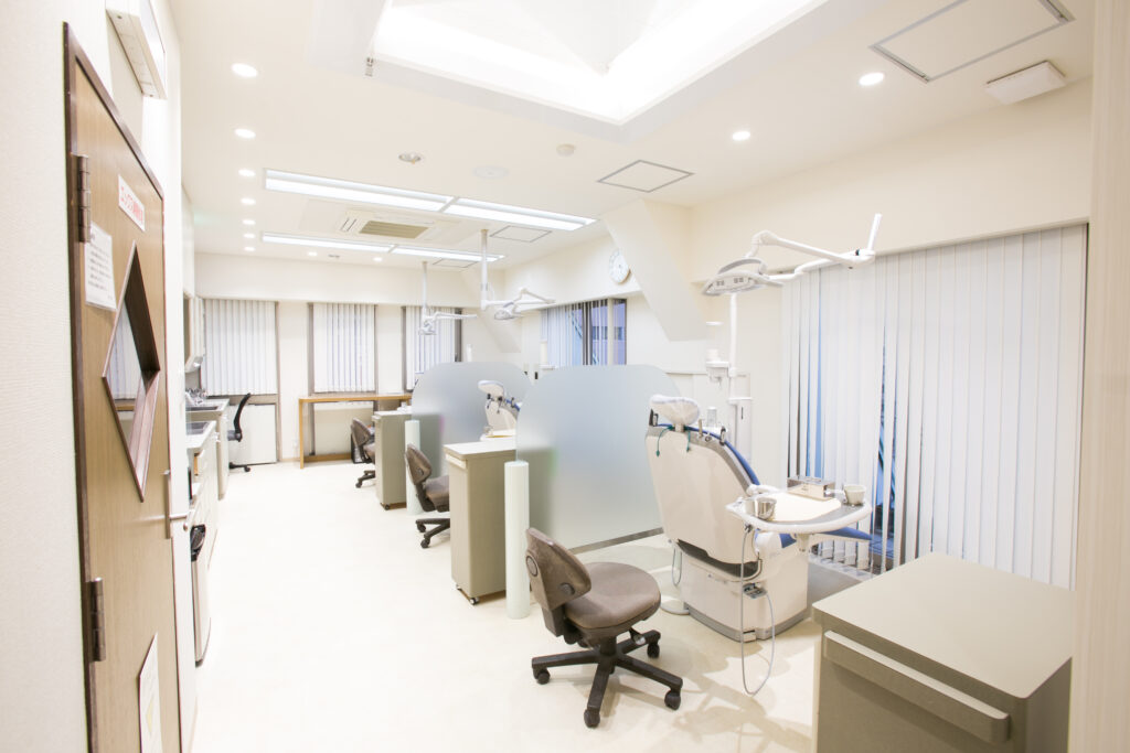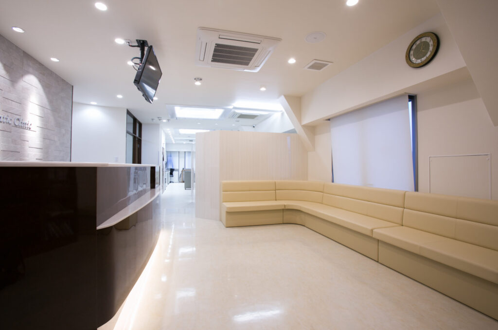 同じフロアに入っていたビルの管理室を解体し、クリニックを拡張。全体的に明るい色の素材を使って清潔感のある空間に仕上げました。照明は、処置室には作業がはっきり見える白色を、待合室にはリラックス効果のある電球色を配置し、用途に合わせて使い分けています。