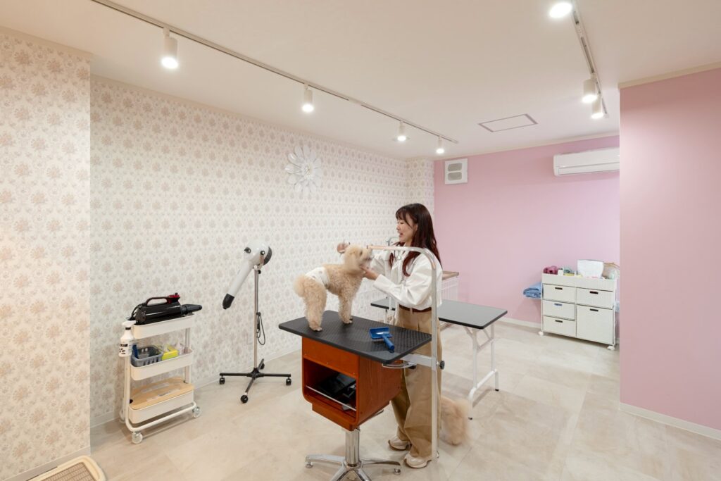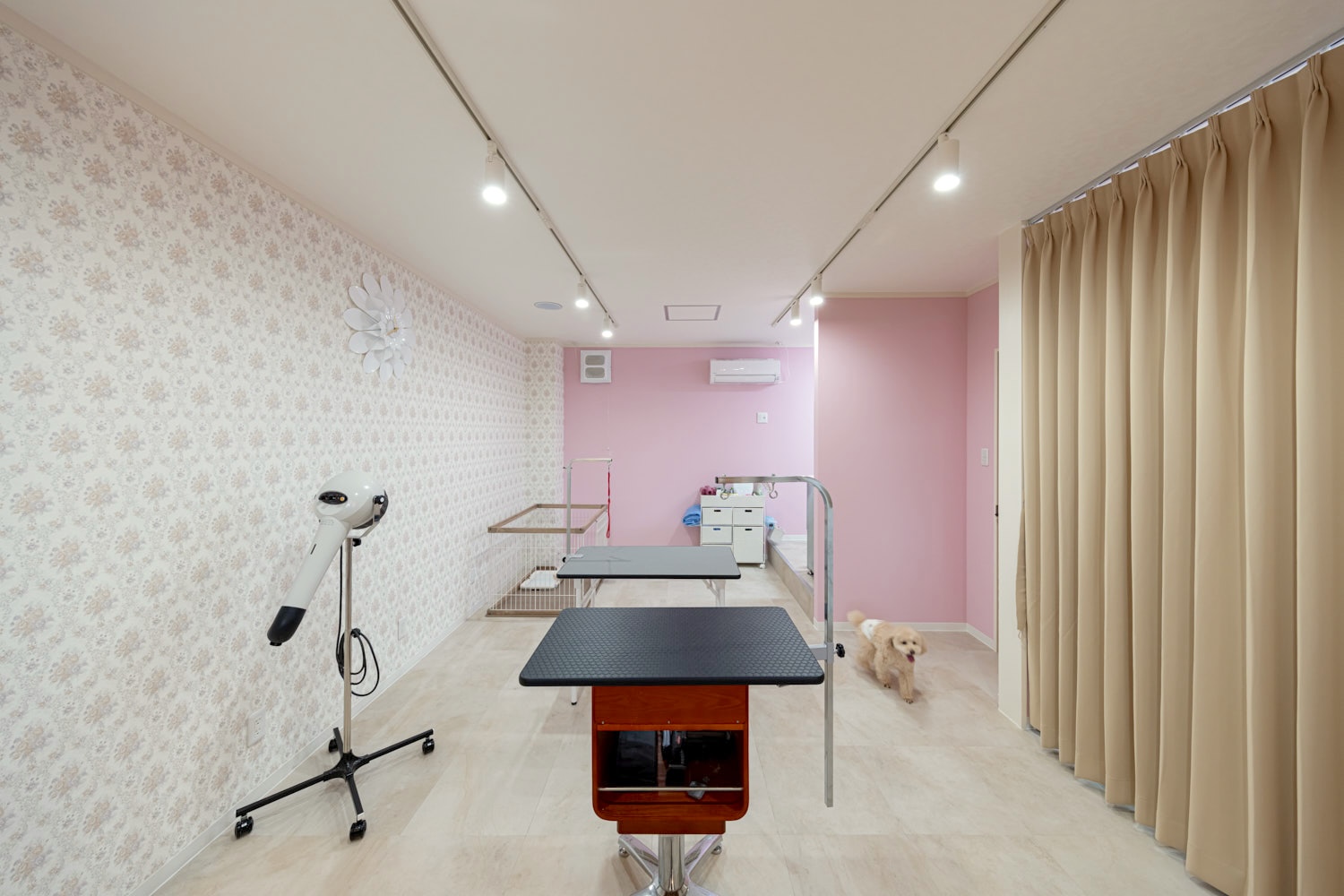 オーナー様のこだわりが詰まった可愛らしい空間でわんちゃん猫ちゃんと一緒に、かわいく・心地よく過ごせるサロンです。